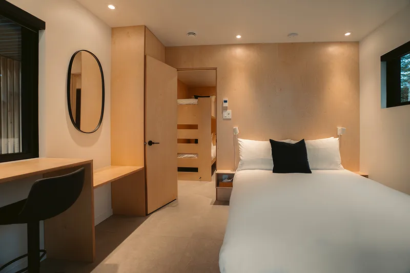 Véritable cocon au milieu de la nature, le Nanok est l’endroit idéal pour créer des souvenirs inoubliables. Espace de vie lumineux avec une vue imprenable sur la nature luxuriante, cuisine tout équipée, 1 chambre fermée avec 1 lit queen et un espace boudoir avec 2 lits simples (superposés) situés au rez-de-chaussée pour une capacité d’accueil de 4 personnes ; tout à l’intérieur est parfaitement agencé pour passer un séjour agréable et ressourçant. À vous les levers de soleil et les levers de lune des plus grandioses.
