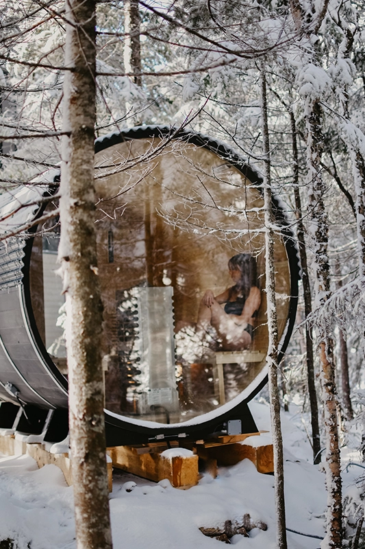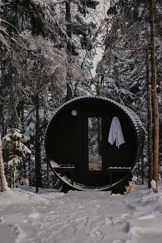 Expérience thermale - sauna baril, spa, douche extérieure froide