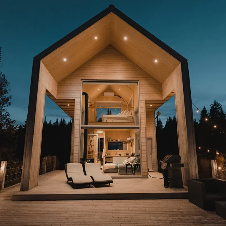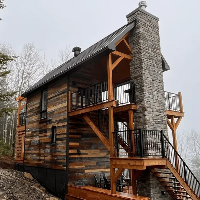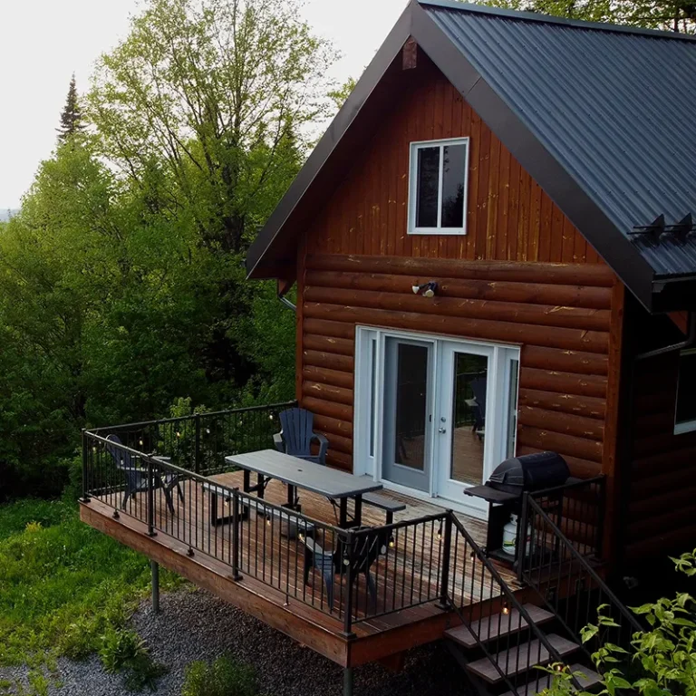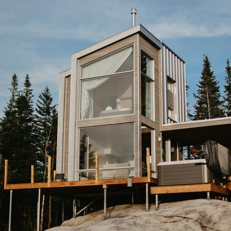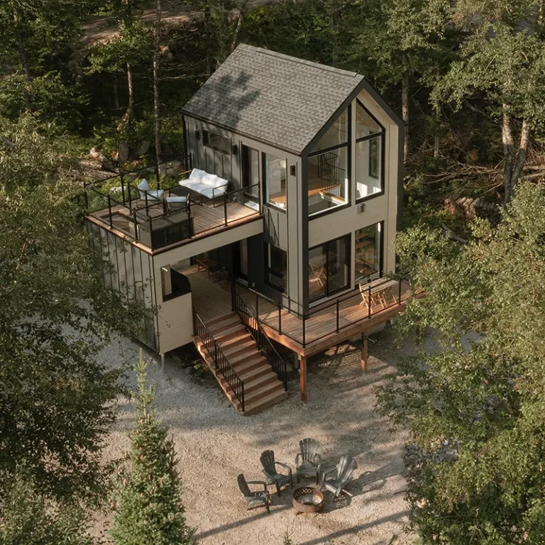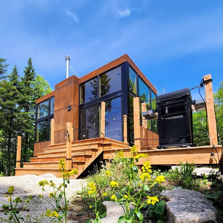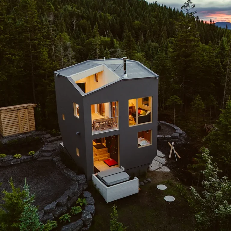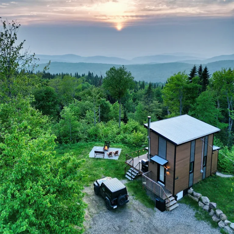 MIST MIST Welcome to MIST – Unplug and unwind in our modern micro-chalet nestled in the heart of the boreal forest. A smartly designed space offering a comfortable, no-compromise stay in nature. Perfect for 2 to 4 guests (up to 6 maximum), you’ll enjoy a range of luxurious modern amenities: a fully equipped kitchen, air conditioning, indoor and outdoor fire areas, fast Wi-Fi, and more. Located just steps away from Sentiers du Moulin – a true year-round outdoor playground. Ready for some fresh forest air? Book your stay today! For each reservation, a tree will be planted to repopulate the beautiful forests of Canada and around the world. CITQ : 317001 exp. 2026-12-19 AMENITIES INSIDE: Sleeps up to 6 guests (Note: $25/night per additional guest over 2 people) Master bedroom on the main floor with Queen bed Two full-size bunk beds (open-concept, main floor) 1 full bathroom (main floor) Mezzanine