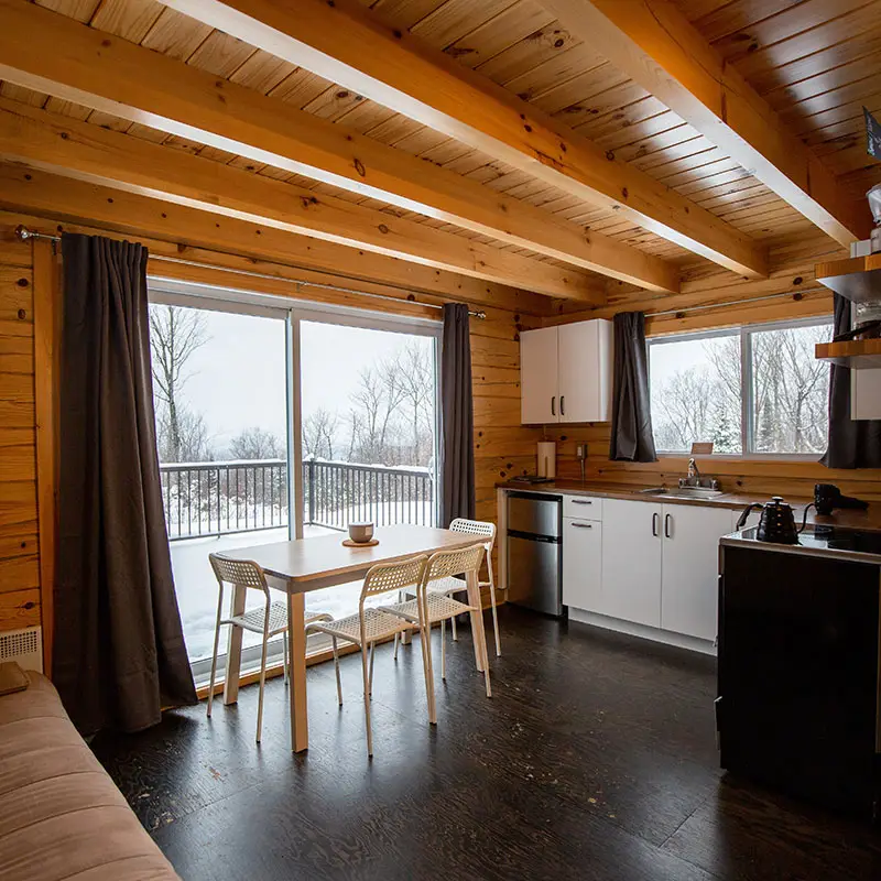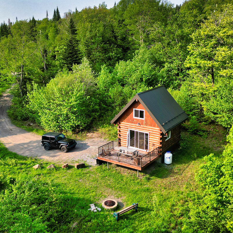 Come and enjoy the BIKE & SLEEP experience in our rustic woodlog cabin with 20m2 of fully equipped indoor space, two floors, and room for up to 4 people. Locate (2 people and more / additional charges will apply per night $)d on the west-facing side of the mountain, Élisa is the place to sit back and relax once your thighs are too sore to keep going.