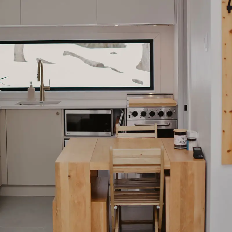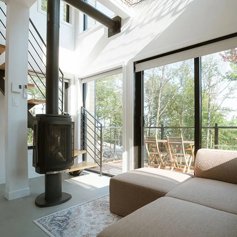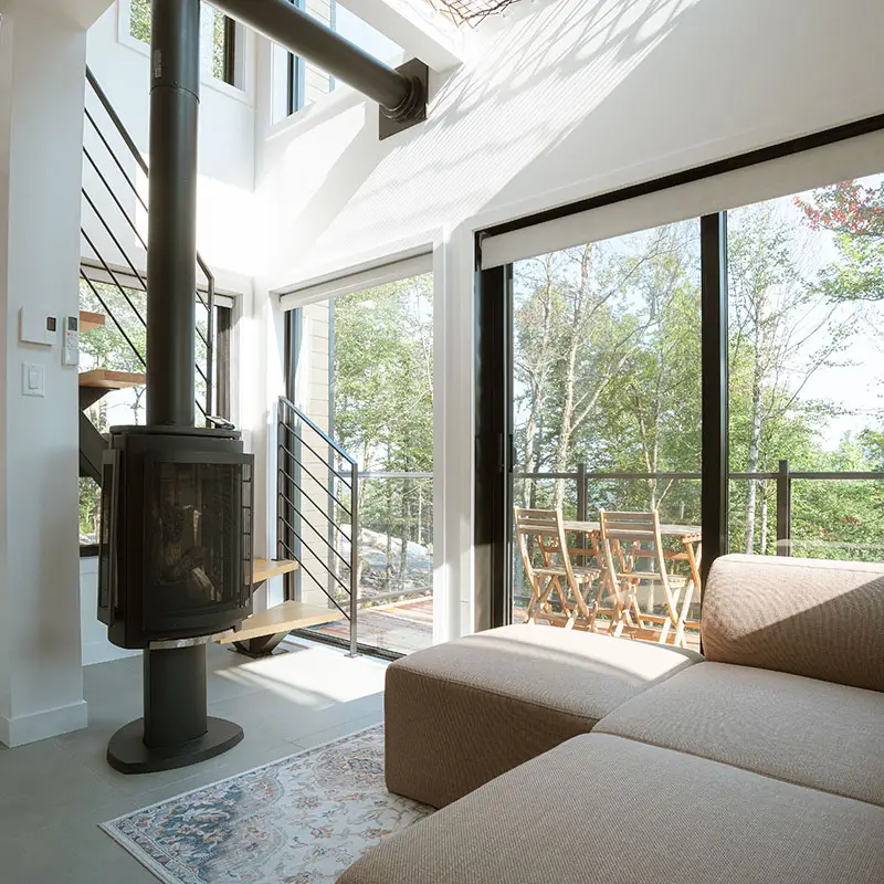 Large windows overlook the surrounding nature, offering relaxing views that invite you to unwind and connect with the beauty of our natural environment. The propane fireplace emits a gentle and soothing warmth, creating a calm space where daily concerns dissipate before the dancing flames.