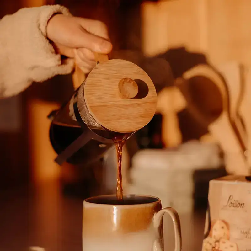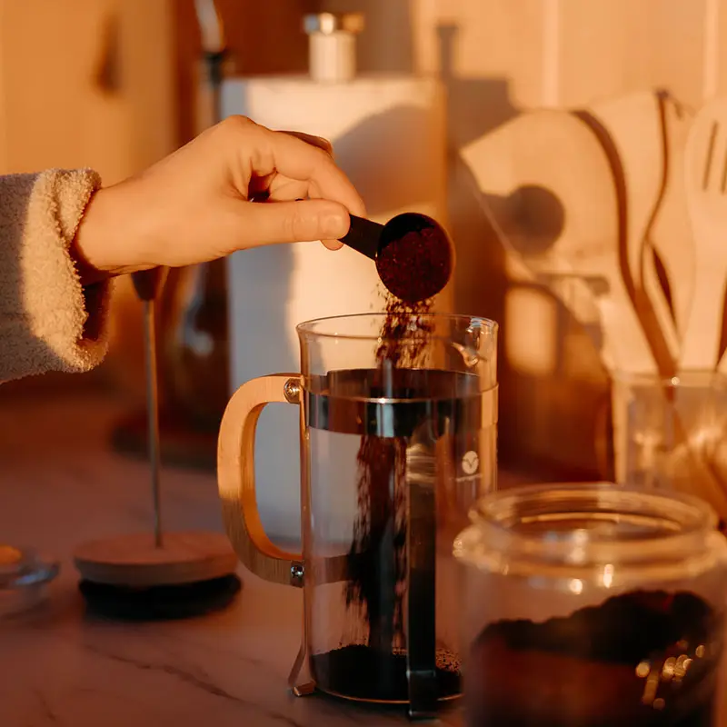- French press coffee maker + coffee