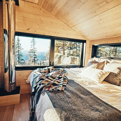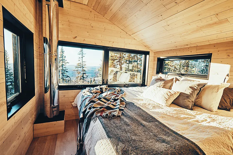 The MIR is a cabin on 2 floors that can accommodate up to 4 people and a perfect place to recharge your battery. Offering magnificent views, its orientation allows you to enjoy memorable sunsets. During your stay, get dress, enjoy the bike-in/ bike-out and practice you favorite sport; less than 2 minutes from the cabin, you will find a trail (Maelstrom sector of Les Sentiers du Moulin).
