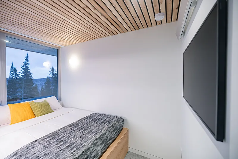 Welcoming and perfect for those seeking to combine adventure and comfort, the PEACE cabin is a haven of serenity in the heart of Maelström Mountain. Located at an ideal altitude for breathtaking panoramas, this chalet is an invitation to relaxation for families and groups of friends, with a capacity for 6 people. Enjoy two warmly decorated bedrooms and a living room with a sofa bed, all ensuring privacy and comfort.