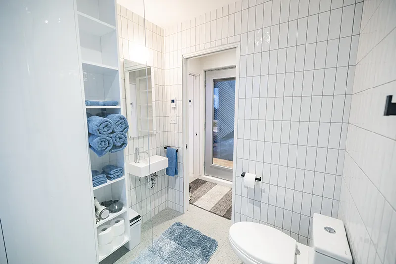 - Bath products provided: shampoo, conditioner, and soap