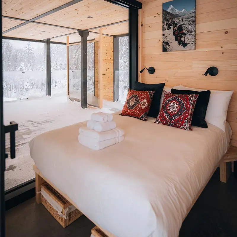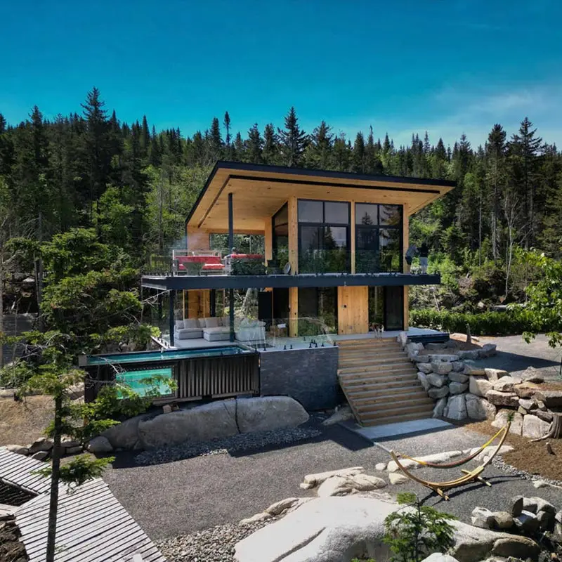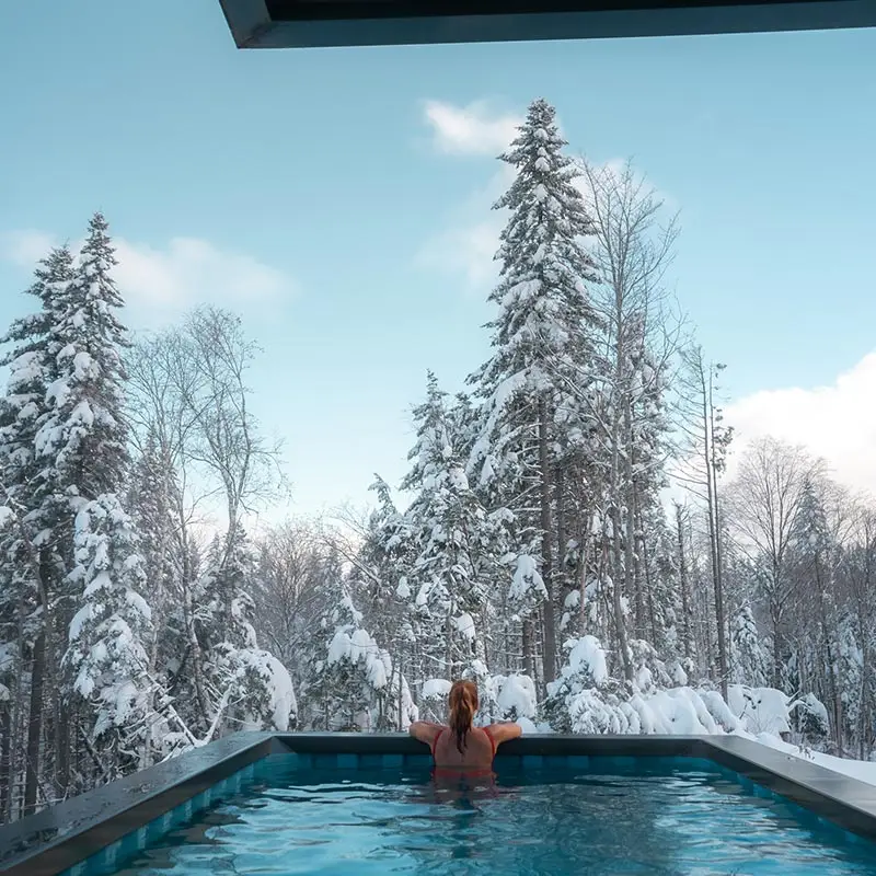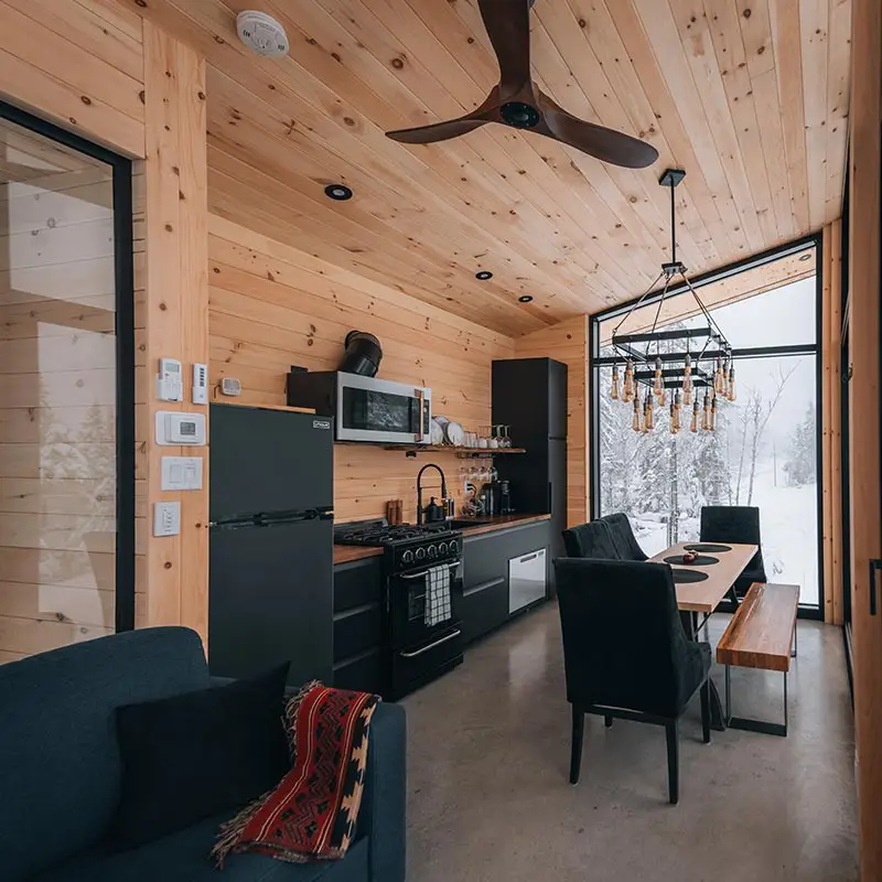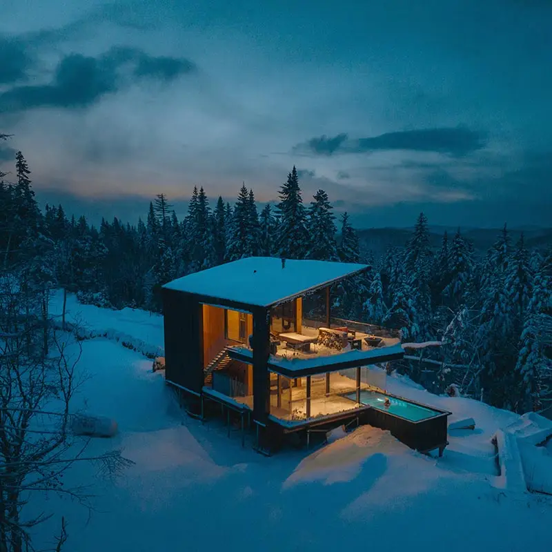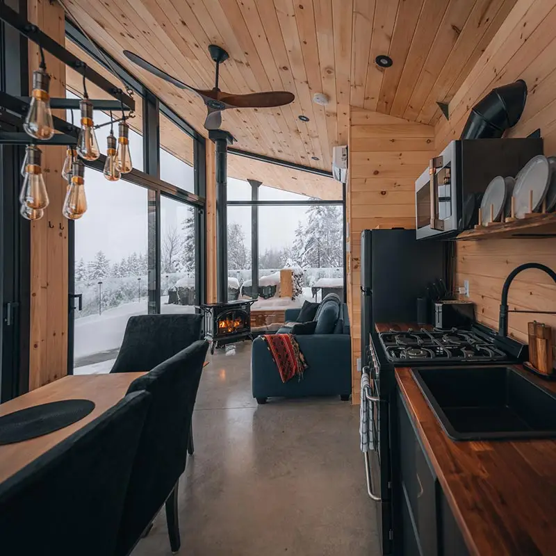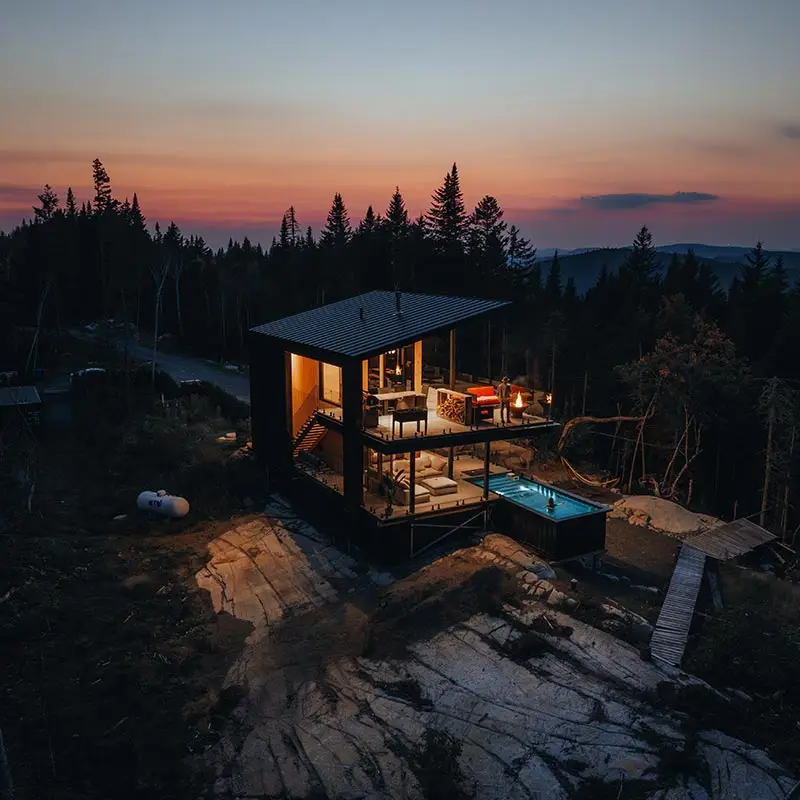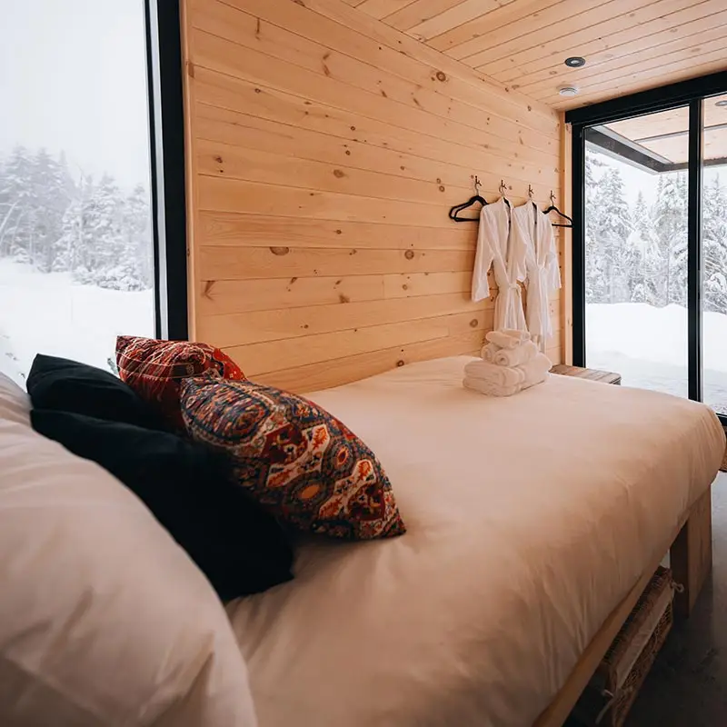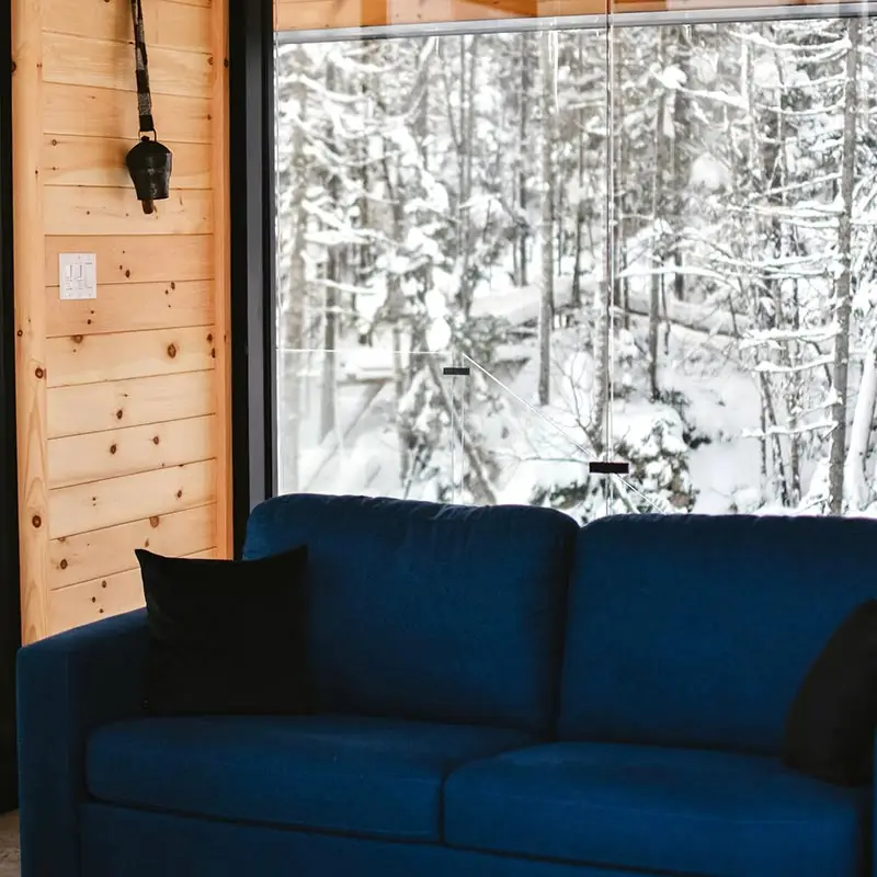 Welcome to Yak, an oasis of elegance in the heart of Montagne Maelström, at an altitude of 530 meters, where style meets comfort. The Yak is perfect for family getaways or gatherings with friends. With 2 carefully furnished closed bedrooms (one with a queen bed and the other with a double bed) and a sofa bed, 4 to 6 people can come together while enjoying privacy. At Yak, you won’t miss waking up every morning to a breathtaking spectacle. The large windows offer a panoramic view of the forest and surrounding mountains, creating an unforgettable backdrop for your stay. In terms of comfort, everything is there! Air conditioning for hot summer days, heated floors, and a gas fireplace to keep you warm during cold winter days. If you enjoy lively meals around a large table, Yak’s dining area comfortably seats 6 people. Enjoy convivial meals and memorable evenings. To prepare your meals, you’ll find all the amenities of your kitchen at Yak: an 11-cubic-foot refrigerator, microwave/convection oven, gas stove, and dishwasher. What will make your stay truly memorable is the outdoor thermal pool with a unique glass window that allows you to contemplate the mountains, even underwater. Experience Yak and be forever amazed and captivated, to the point of exclaiming: oh my Yak!