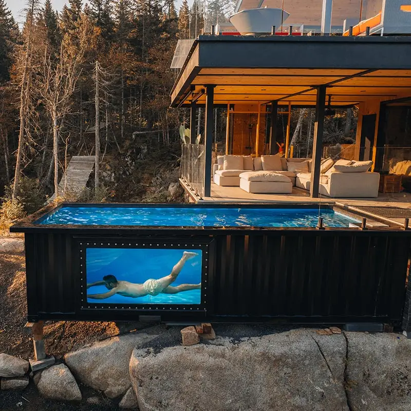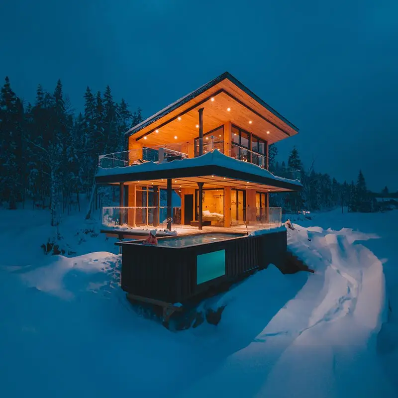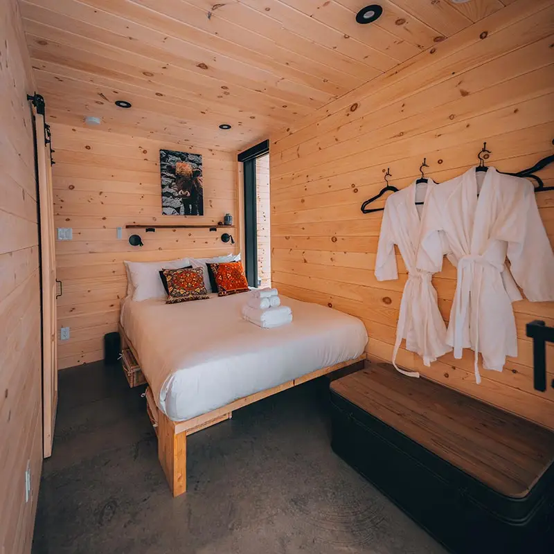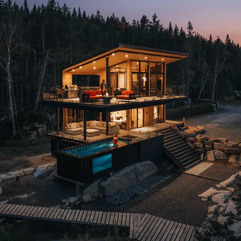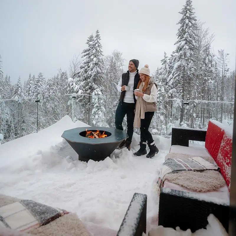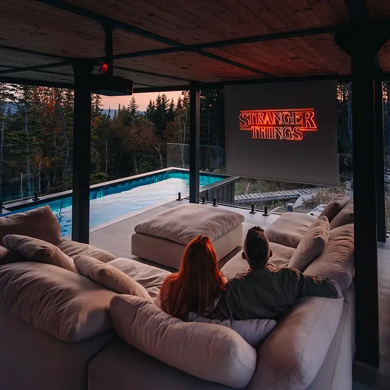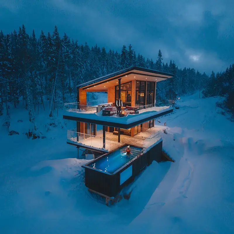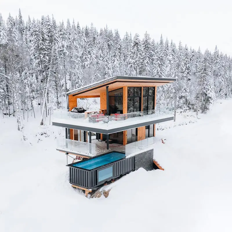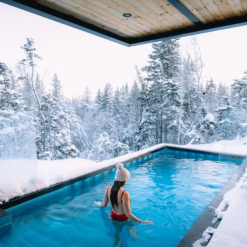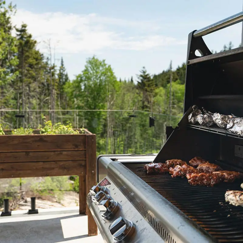 Welcome to Yak, an oasis of elegance in the heart of Montagne Maelström, at an altitude of 530 meters, where style meets comfort. The Yak is perfect for family getaways or gatherings with friends. With 2 carefully furnished closed bedrooms (one with a queen bed and the other with a double bed) and a sofa bed, 4 to 6 people can come together while enjoying privacy. At Yak, you won’t miss waking up every morning to a breathtaking spectacle. The large windows offer a panoramic view of the forest and surrounding mountains, creating an unforgettable backdrop for your stay. In terms of comfort, everything is there! Air conditioning for hot summer days, heated floors, and a gas fireplace to keep you warm during cold winter days. If you enjoy lively meals around a large table, Yak’s dining area comfortably seats 6 people. Enjoy convivial meals and memorable evenings. To prepare your meals, you’ll find all the amenities of your kitchen at Yak: an 11-cubic-foot refrigerator, microwave/convection oven, gas stove, and dishwasher. What will make your stay truly memorable is the outdoor thermal pool with a unique glass window that allows you to contemplate the mountains, even underwater. Experience Yak and be forever amazed and captivated, to the point of exclaiming: oh my Yak!
